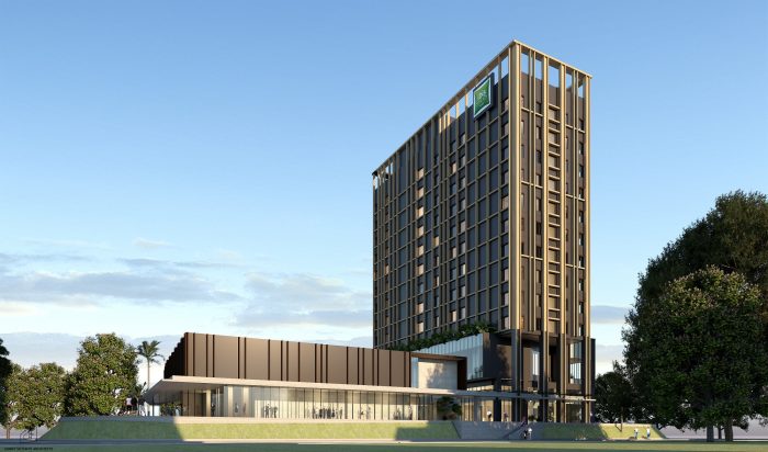 Hotel 12 lantai yang menarik perhatian ini akan menjadi pusat pertemuan dan acara, dengan grand ballroom yang dapat menampung hingga 600 tamu untuk konferensi perusahaan dan acara sosial, didukung oleh ruang pertemuan khusus dan teknologi audio visual.