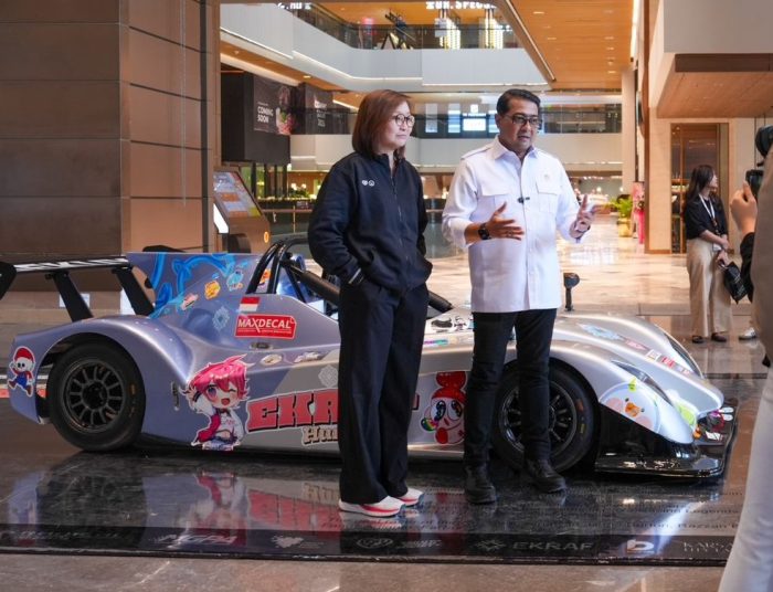 JAKARTA, ITN – Menteri Ekonomi Kreatif (Ekraf), Teuku Riefky Harsya, dan Wakil Menteri (Wamen) Ekraf, Irene Umar, menghadiri acara showcase mobil balap yang ditampilkan kepada publik di lobi Autograph Tower, Jakarta, Selasa, 17 Juni 2025. Kegiatan ini merupakan tindak lanjut dari upaya Kementerian Ekraf dalam memperkuat kolaborasi para kreator lokal yang dilahirkan dari kompetisi livery design JFF 2025 X Sekuya serta kurasi 13 IP Ekraf Hunt.