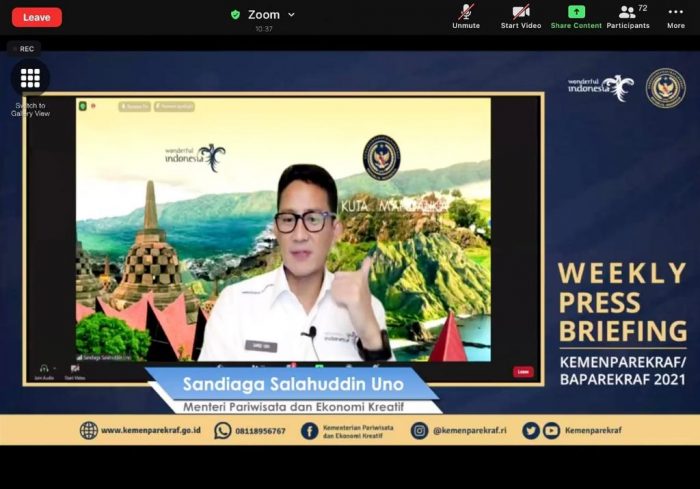 Selain itu, Kemenparekraf juga terus memberikan pelatihan dan pendampingan secara digital bagi pelaku parekraf, agar dapat menghasilkan produk-profuk kreatif walaupun di rumah saja.