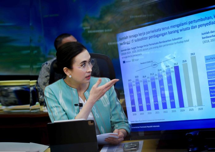 Menteri Pariwisata menjelaskan tenaga kerja pariwisata menunjukkan tren pertumbuhan yang konsisten. Hingga akhir tahun 2024, tenaga kerja pariwisata mencapai 25 juta orang, meningkat dibandingkan sebelum pandemi pada 2019.