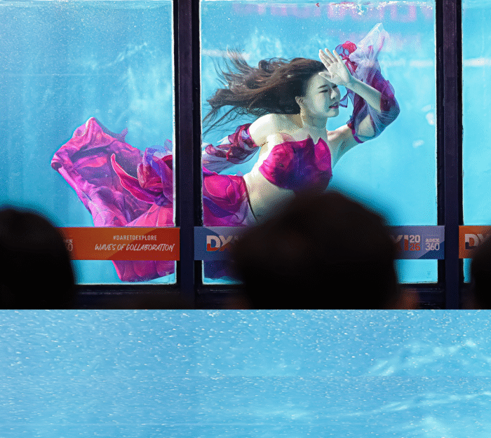 Tak hanya itu, sorotan utama datang dari scubex area, yang menghadirkan special performance dari Mermaid Song Mi dari Korea Selatan, Mermaid Sheila dan Mermaid Siren yang membuat terpukau para pengunjung DXI 2026 melalui pertunjukan bawah air yang memadukan keindahan gerakan, teknik freediving, serta unsur hiburan yang artistik. Performance ini tidak hanya sekedar memberikan pengalaman visual yang unik, tetapi juga menjadi bentuk edukasi yang mengangkat dunia mermaid sebagai bagian dari olahraga air dan seni pertunjukan.