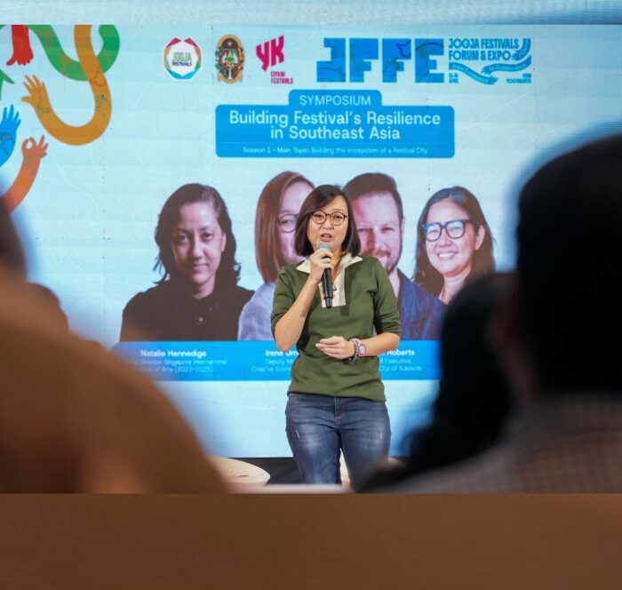Simposium ini menghadirkan perspektif global dari Glyn Roberts Chief Executive Festival City Adelaide dan Natalie Hennedige Festival Director Singapore International Festival of Arts yang menyoroti pentingnya kemitraan publik-swasta serta model bisnis berkelanjutan, sejalan dengan apresiasi Wamen Ekraf terhadap inisiatif Jogja Festivals dalam mempertemukan berbagai pihak secara strategis.