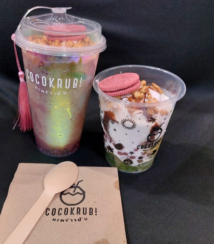 Selain minuman, Cocokrub! juga menyediakan Ice Cream Coconut dengan pilihan dry toppings dan wet toppings. Pilihan dry toppings, antara lain Ground Peanut, Dried Coconut Flakes, Coconut Brittle, dan Coconut Rice Ball.