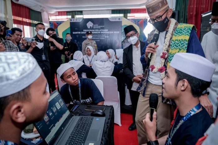 JAKARTA, ITN – Menteri Pariwisata dan Ekonomi Kreatif/Kepala Badan Pariwisata dan Ekonomi Kreatif (Menparekraf/Kabaparekraf) Sandiaga Salahuddin Uno mendorong santripreneur atau gerakan kewirausahaan di lingkungan pondok pesantren agar meningkatkan kemampuan ekonomi digital.
